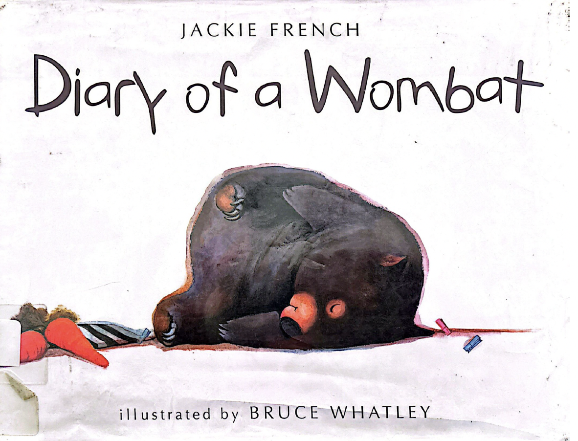 The book ‘Diary of a Wombat’ is written by Jackie French and illustrated by Bruce Whatley. In this funny story a cuddly, cute wombat wants to be closer to a family, but they try to get rid of him. The book shows wombats as determined animals who are very like humans!