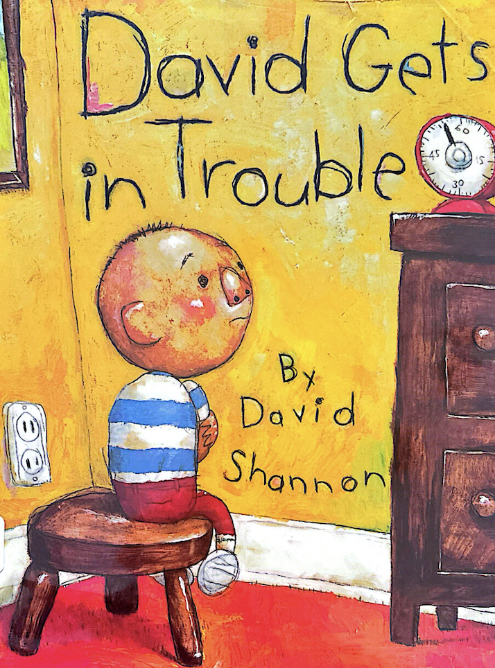 The book ‘David Gets in Trouble’ is written by David Shannon. In this story, David doesn’t mean to get in trouble. It’s not his fault most of the time, it’s just an accident! or maybe he forgot something. Or some furniture got in the way. Once again, David Shannon proves he knows every excuse in the book – especially when faced with the age-old problem of dealing with grown-ups.