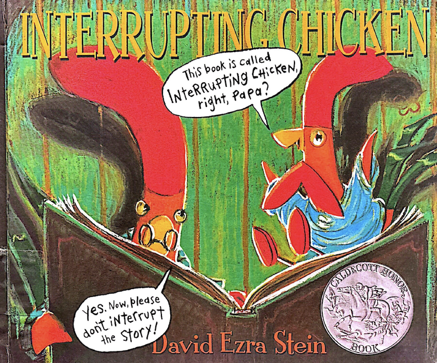 The book ‘Interrupting Chicken’ is written by David Ezra Stein. It tells the story of a young chicken who can’t help interrupting his dad as he reads him his bedtime story! But what happens when the young chicken begins to read a story to his dad?