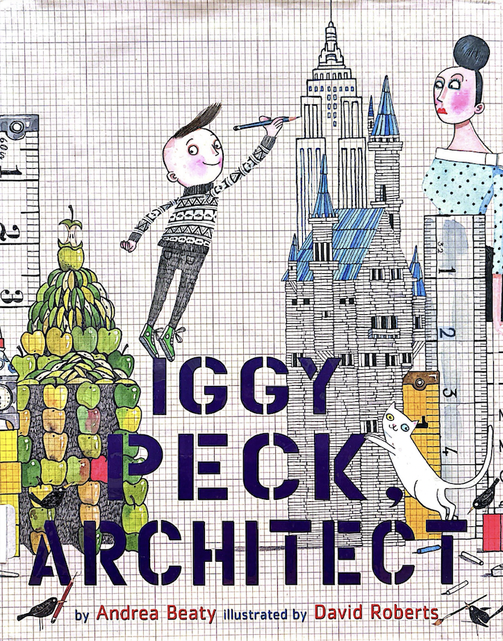 The book ‘Iggy Peck, Architect’ is written by Andrea Beaty and illustrated by David Roberts. In this story, Iggy Peck has one passion which is building. He is creative and inspired, but his teacher is not very supportive of his passion. However, one day he gets to prove that his love of building is also very useful!